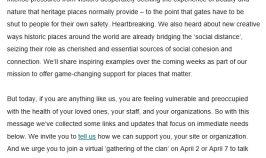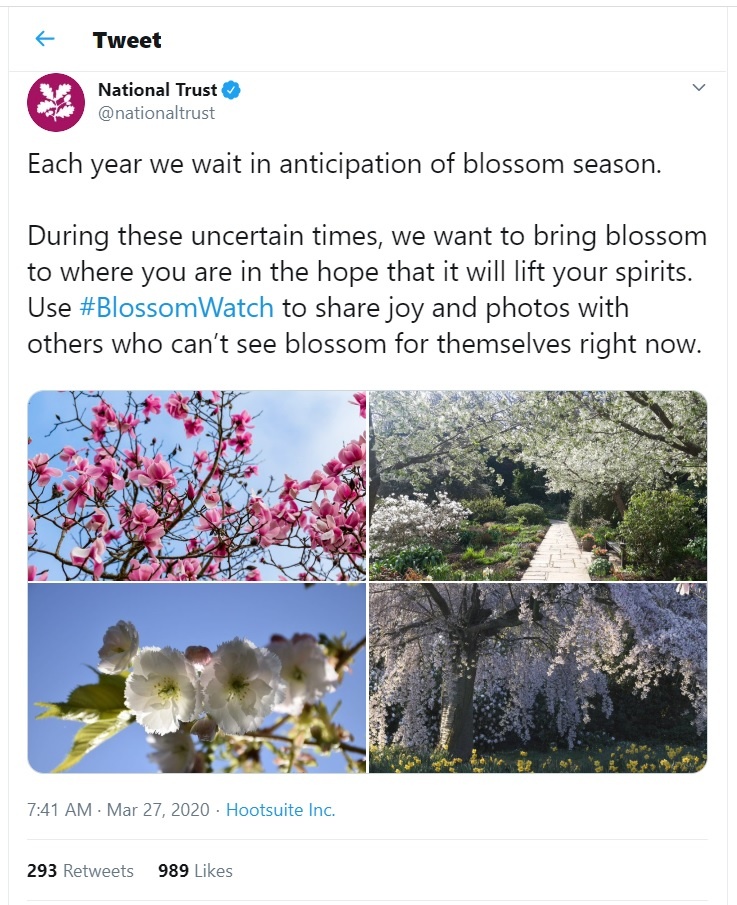 We are thinking of you all as the COVID-19 situation develops on a daily basis. Like every other organisation, our primary concern is for people who are suffering or on the front line. And we hope of course that members and supporters of the international national trust family stay safe.
