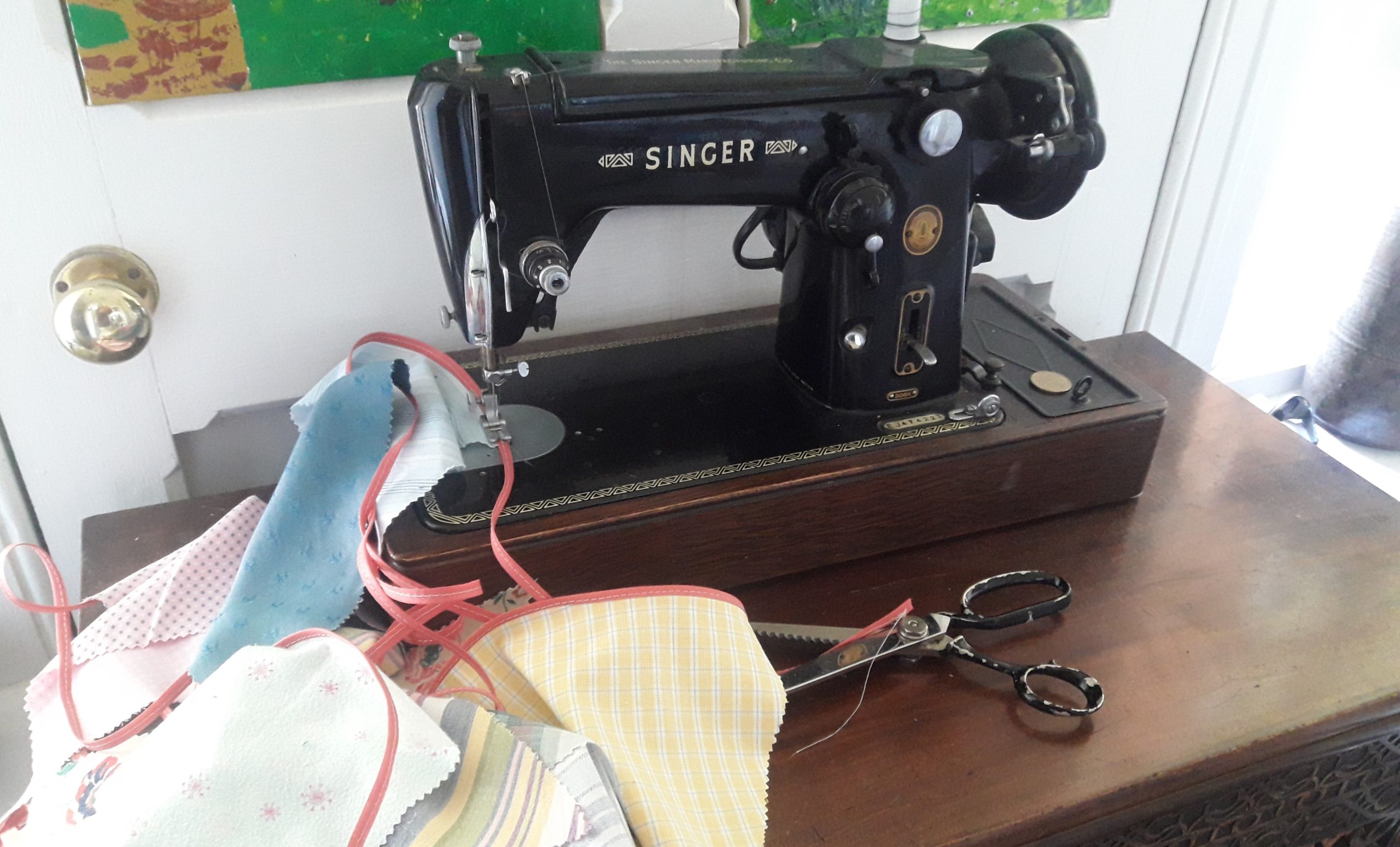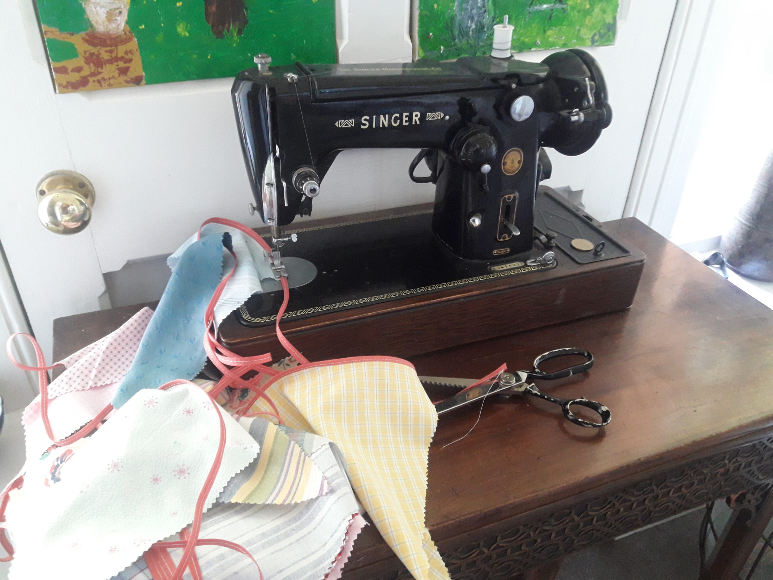 (Here’s a picture of my bunting, full of reminiscences as it’s made from scraps of material from the past. An old curtain belonging to my Granny, some of my late father’s cotton shirts, clothes our children have outgrown, worn out sheets I bought on my first trip to India – each ‘flag’ tells a story!)